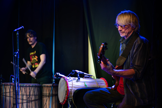JP: S baskytarou jsem se přidal k Jirkovi a Zdenálovi až po roce, kdy hráli ve dvojici. Cílem bylo vytvořit na bázi afrických rytmů vlastní hudbu, v první fázi to bylo hledání, co funguje a co ne. Rychle jsem zjistil, že standardní baskytara společně s basovými bubny dává příliš dunivý zvuk a chybí harmonické středy. Nakonec jsem přestrunil a přeladil baskytaru pětku do barytonové polohy a pravačkou začal hrát kytarovým stylem. Takže hraju na baskytaru, ale ne basové linky. Po roce hraní ve třech, tj. dvoje africké bubny + barytonová kytara, jsme došli k tomu, že potřebujeme melodický nástroj.